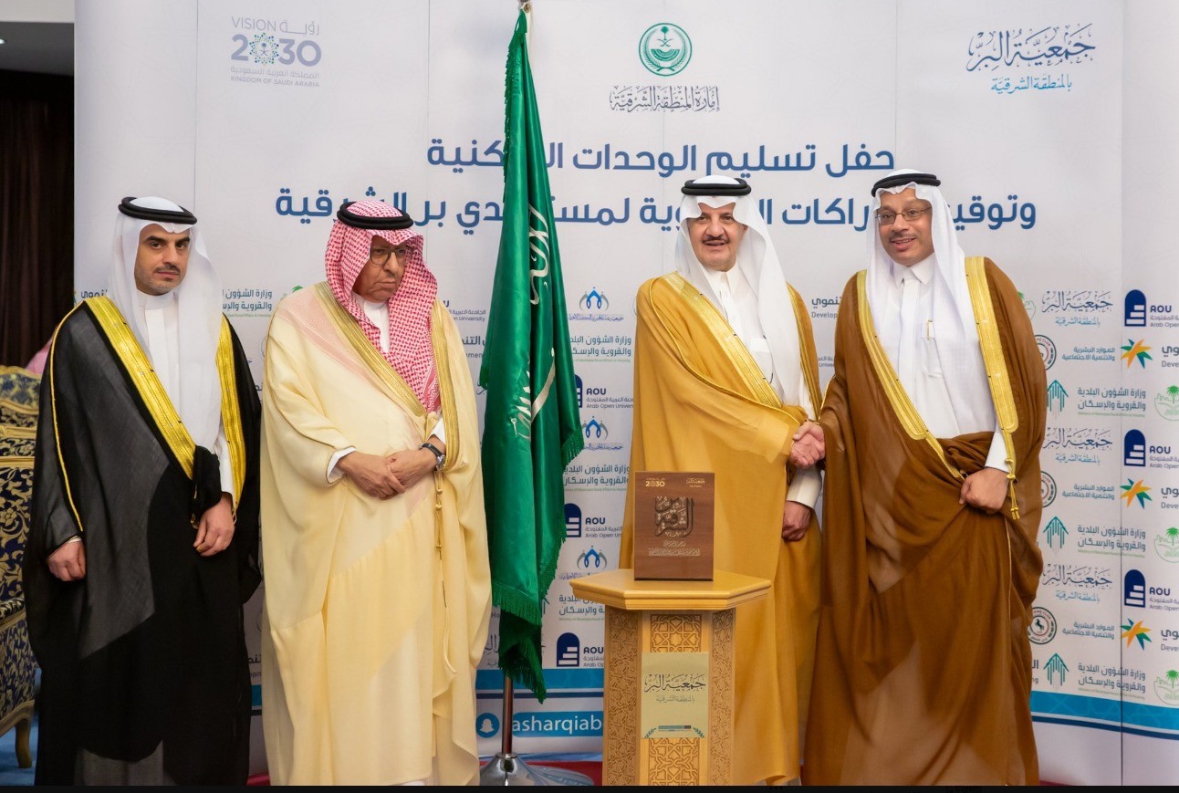 سلم سمو أمير المنطقة الشرقية سعود بن نايف بن عبدالعزيز، رئيس مجلس إدارة جمعية البر بالمنطقة بديوان الإمارة اليوم، 50 وحدة سكنية للمستفيدين من خدمات الجمعية من الأسر الأشد حاجة تضاف للوحدات السكنية التي سلمت سابقاً، وبلغ عددها 1178 وحدة من أصل 4000 وحدة سكنية، كان قد وقع سموه اتفاقية تنفيذها بين جمعية البر بالشرقية ووزارة الشؤون البلدية والقروية والإسكان بقيمة إجمالية تقدر بمليار و300 مليون ريال.