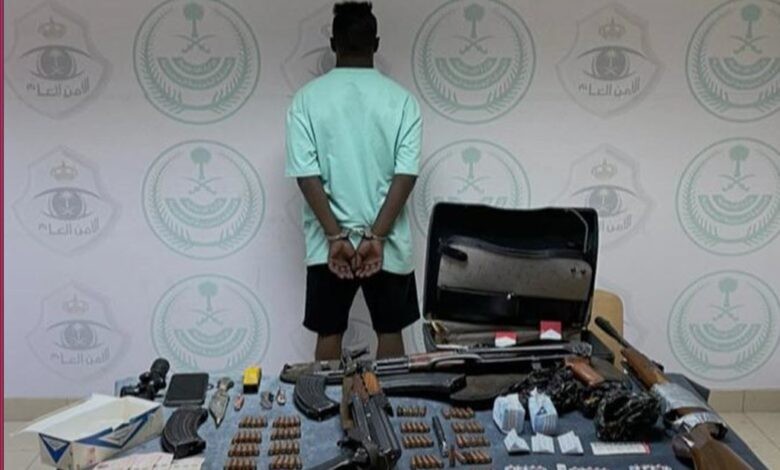 قبضت دوريات الأمن بمحافظة القريات في منطقة الجوف على مواطن لترويجه مادة الحشيش المخدر وأقراصًا خاضعة لتنظيم التداول الطبي، وضبط بحوزته أسلحة نارية وبيضاء وبندقية هوائية وذخيرة حية، ومنظار، وجرى إيقافه واتخاذ الإجراءات النظامية بحقه وإحالته إلى جهة الاختصاص.