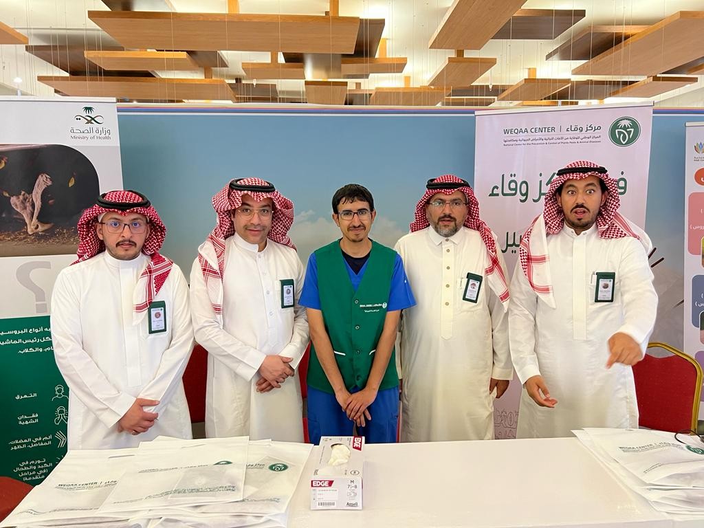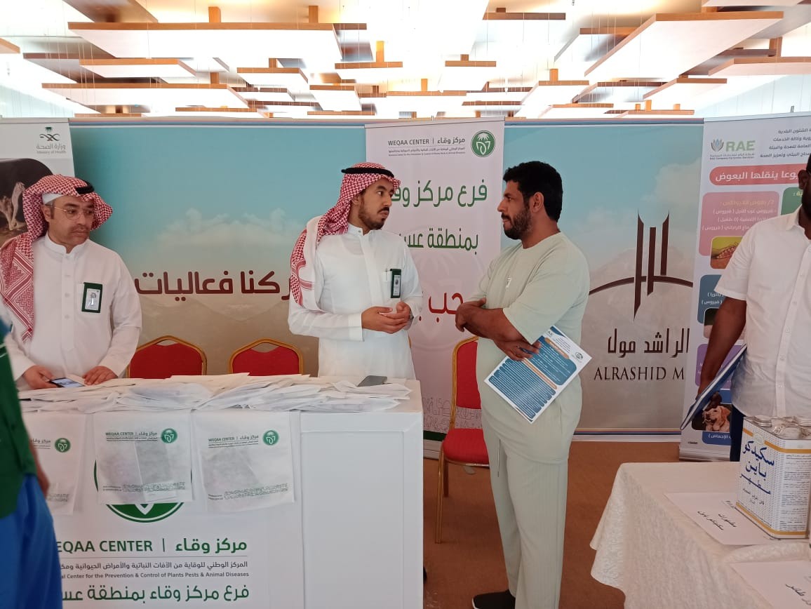 بمناسبة اليوم العالمي للأمراض المشتركة نظم المركز الوطني للوقاية من الآفات النباتية والامراض الحيوانية ومكافحتها بمنطقة عسير (وقاء) بالتعاون مع ادارة مكافحة نواقل المرض والامراض المشتركة بوزارة الصحة وإدارة الإصحاح البيئي برنامجا في الراشد مول يهدف الى التعريف بالأمراض التي تسببها الحيوانات او التي تصيب الحيوانات ويمكن ان تنقل الى الانسان بشكل مباشر او غير مباشر والعكس كذلكـ يأتي ذلك تزامنا مع اليوم العالمي للأمراض المشتركة التي تتمثل خطورتها في سرعة انتشارها بين الأفراد وتأثيراتها الصحية علي الانسان وعلى مصادر الغذاء.
