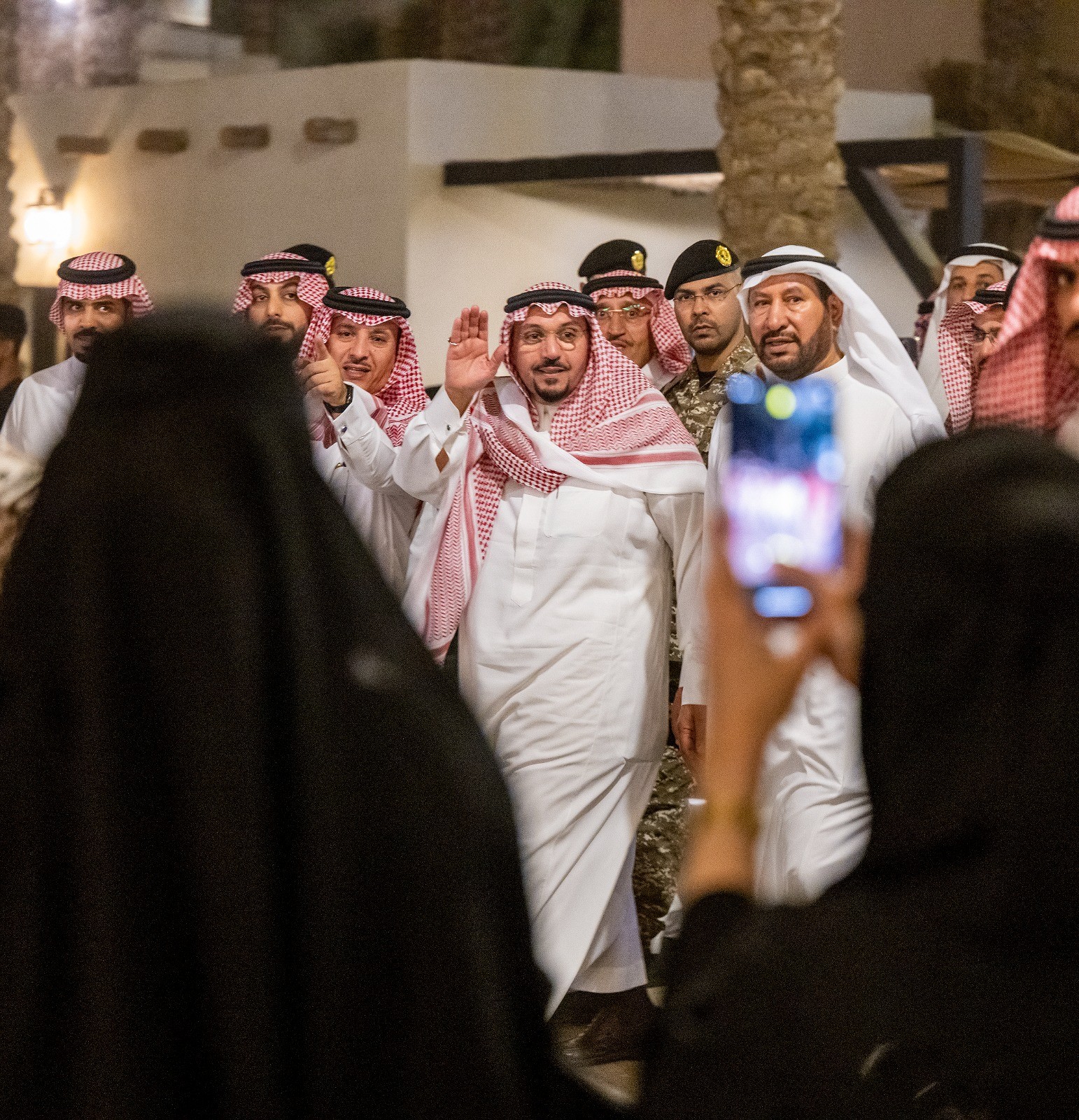 رافق سموه خلال الزيارة محافظ عنيزة عبدالرحمن السليم، وأمين منطقة القصيم المهندس محمد المجلي، ووكيل إمارة القصيم المساعد للشؤون التنموية عسم الرمضي، والمستشار بوكالة خدمة المستفيدين بفرع وزارة البيئة والمياه والزراعة المهندس جارالله الصوينع، وعدد من المسؤولين بالمنطقة.