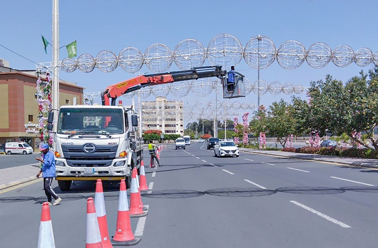 إنجاز صيانة شبكة الإنارة الديكورية والذكية بشوارع الطائف