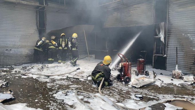 مدني ينبع يخمد حريقًا في أحد المحلات التجارية داخل محطة وقود