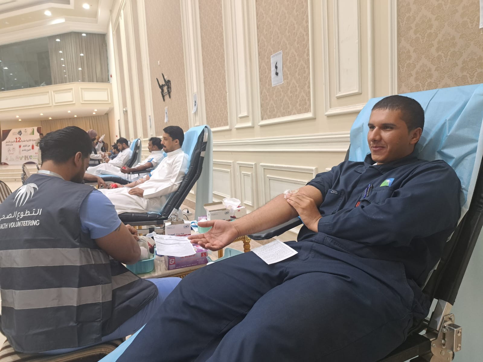 وقال المشرف العام لحملة التبرع بالدم بجمعية العيون الخيرية محمد بن سعود العمر، "حملة التبرع المقامة بجمعية العيون الخيرية بمدينة العيون تحمل النسخة الـ 12 من انطلاقها، وسعدنا كثيرا بما وجدناه من وعي واهتمام وإقبال من المتبرعين من المواطنين ومن المقيمين، لما للتبرع بالدم من أهمية كبيرة للمتبرع وللمستفيد من المرضى المصابين والمحتاجين، موضحا أن إجمالي عدد المتقدمين في اليوم الأول بلغ 71 تم قبول 64 متبرعًا وتم الاعتذار من 7 متقدمين لظروف صحية، داعيا الجميع إلى أهمية الحضور والمشاركة في التبرع بالدم.