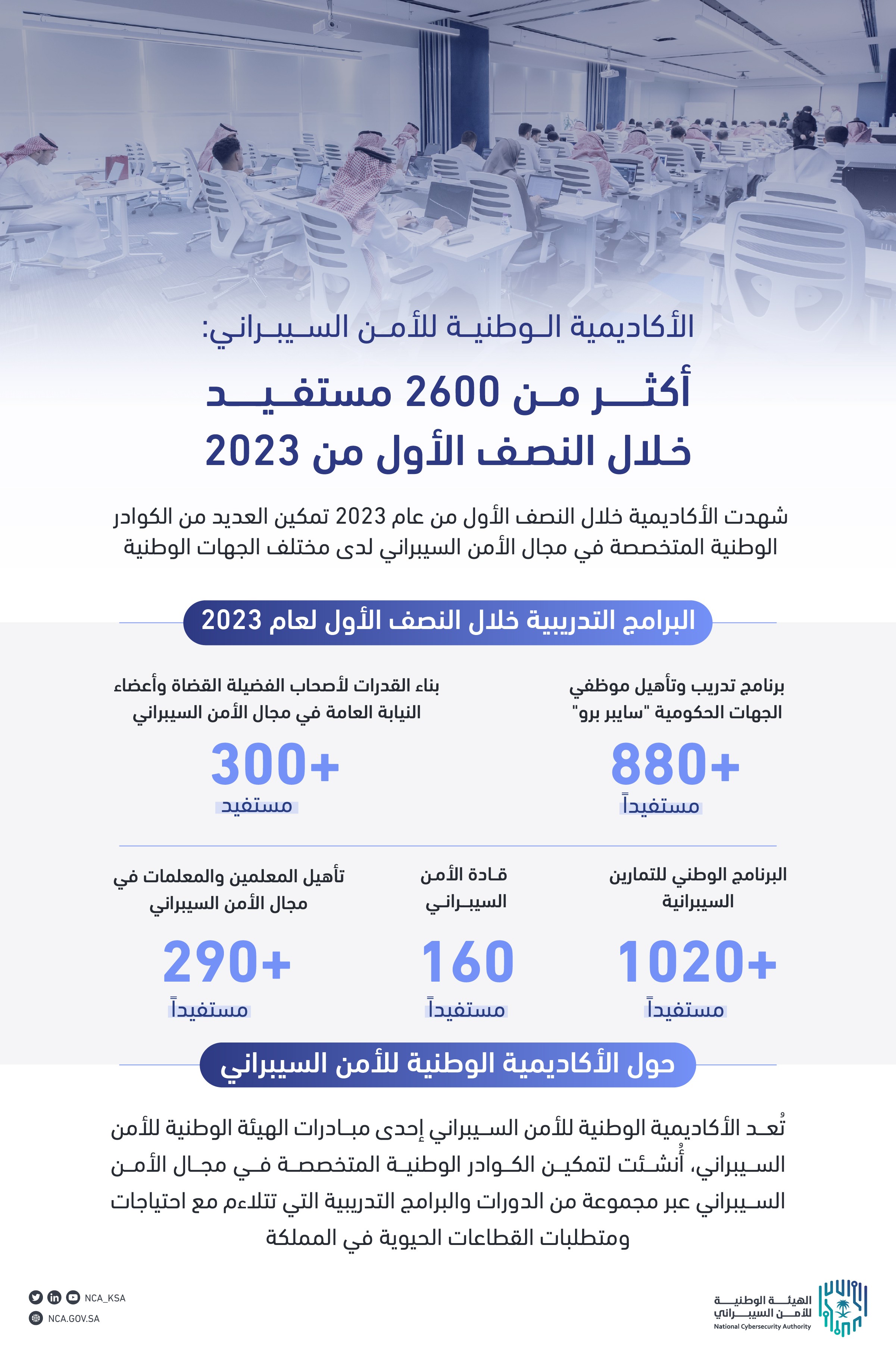 الأكاديمية الوطنية للأمن السيبراني: أكثر من 2600 مستفيد خلال النصف الأول من عام 2023