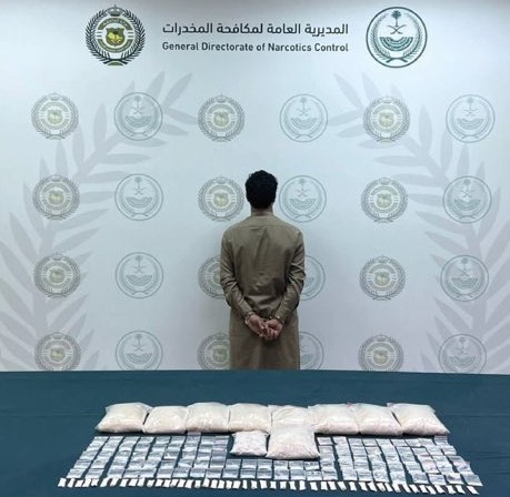 قبضت المديرية العامة لمكافحة المخدرات بمنطقة الرياض على مقيم من الجنسية الباكستانية لترويجه (4.38) كيلوجرامات من مادة الميثامفيتامين المخدر (الشبو) ومادة الهيروين المخدر، وجرى إيقافه واتخاذ الإجراءات النظامية بحقه وإحالته إلى النيابة العامة.