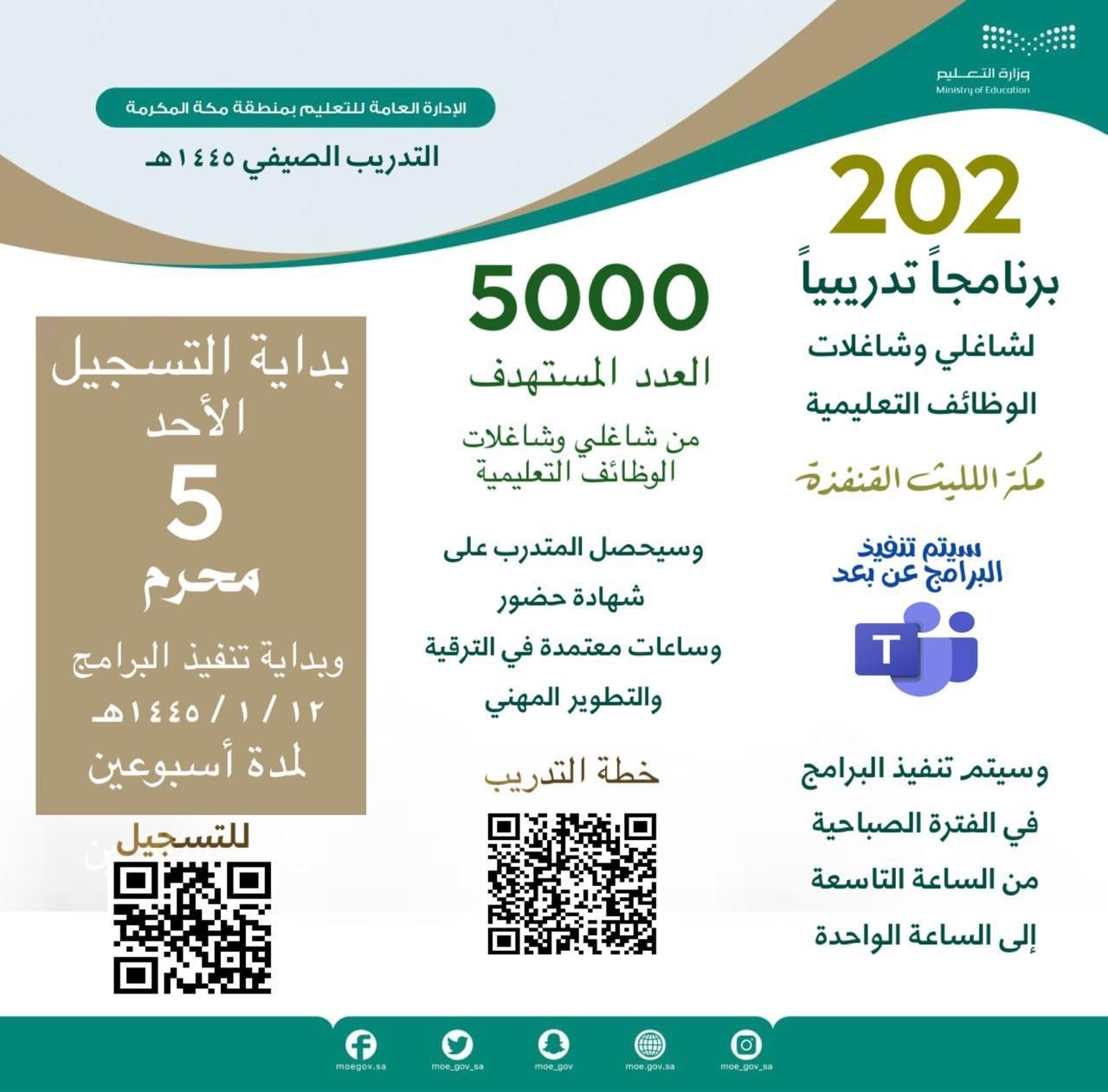 تعليم مكة يطلق (202) برنامجًا تدريبيًا بالتطوير المهني التعليمي الصيفي 1445 هـ