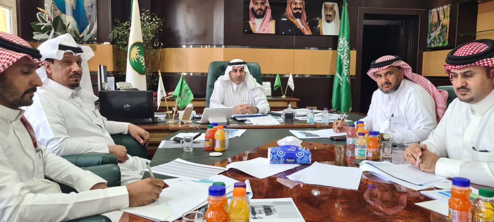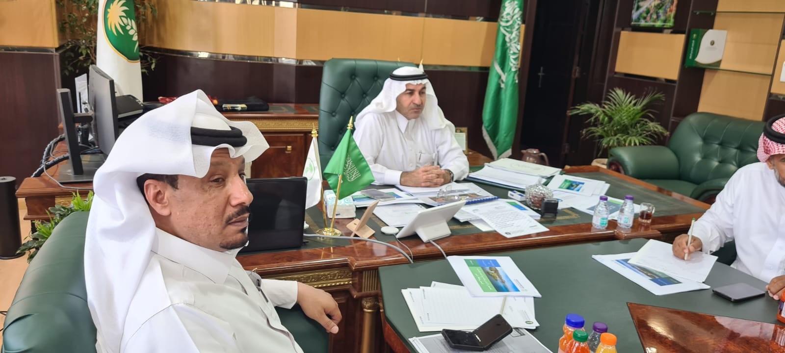 عقد وكيل وزارة البيئة والمياه والزراعة للأراضي والمساحة المهندس صالح بن علي اللحيدان بمقر فرع وزارة البيئة والمياه والزراعية بمنطقة عسير إجتماع بعدد من مسئولي الجهات الحكومية بالمنطقة والشركة الوطنية للمياه وشركة نقل وتقنيات المياه ومؤسسة الري والشركه السعوديه لشراكات المياه المكلفين بلجنة تخصيص أراضي المياه ،