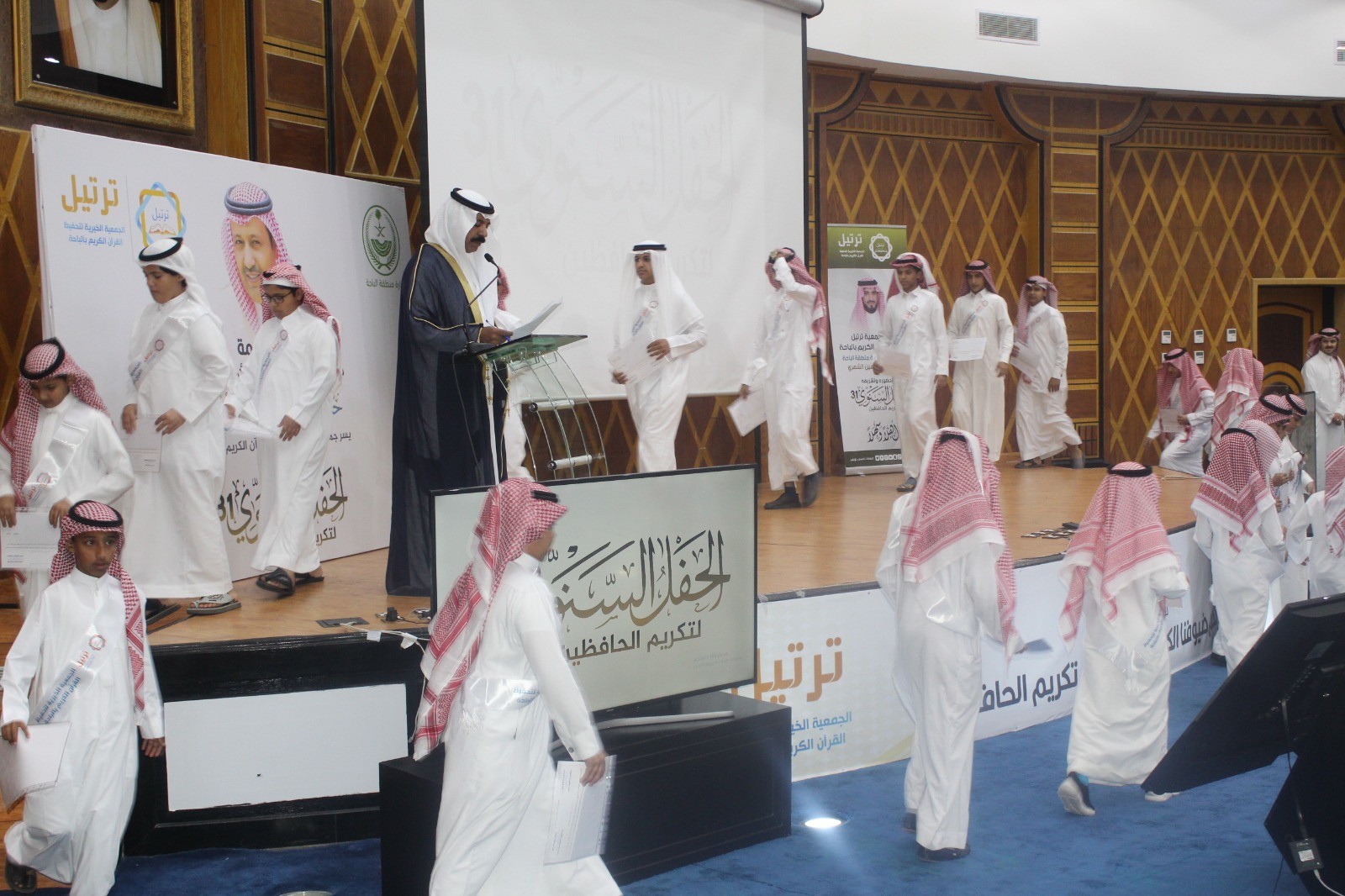 برعاية كريمة من صاحب السمو الملكي الأمير الدكتور حسام بن سعود بن عبدالعزيز أمير منطقة الباحة الرئيس الفخري لجمعية تحفيظ القرآن الكريم بالباحة ( ترتيل ) وبحضور سعادة وكيل الأمارة الاستاذ عبدالمنعم بن ياسين الشهري ؛ أقامت جمعية تحفيظ القرآن الكريم بالباحة الحفل السنوي 31 وتكريم الحافظين لعام 1444هـ ، وذلك بمركز الأمير حسام للمعارض والمؤتمرات بمدينة الباحة ، حيث حضر الحفل مدير عام فرع وزارة الشؤون الإسلامية بالباحة وعدد من مدراء الجهات الحكومية والجمعيات الخيرية لتحفيظ القران الكريم وعدد من المسؤولين ورئيس وأعضاء مجلس الادارة والجمعية العمومية وجمع غفير من الطلاب ومعلميهم وأولياء الامور .