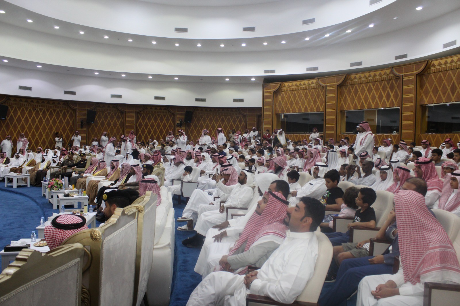 ثم انطلقت مسيرة الطلاب المكرمين. من حفاظ الجمعية وفي ختام الحفل تم تكريم الحفاظ والتقاط صورة تذكارية جماعية ، ثم قدَّم رئيس المجلس درعًا تذكاريًا من مجلس الإدارة ومنسوبيها لسمو أمير المنطقة الرئيس الفخري للجمعية والداعم الاول لجميع أعمال الجمعية .