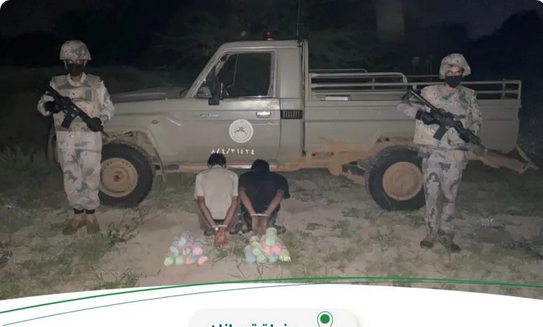قبضت الدوريات البرية لحرس الحدود في قطاع العارضة بمنطقة جازان على مخالفين لنظام أمن الحدود من الجنسية اليمنية، لتهريبهما نبات القات المخدر، وجرى استكمال الإجراءات النظامية الأولية بحقهم، وتسليمهم والمضبوطات لجهة الاختصاص.