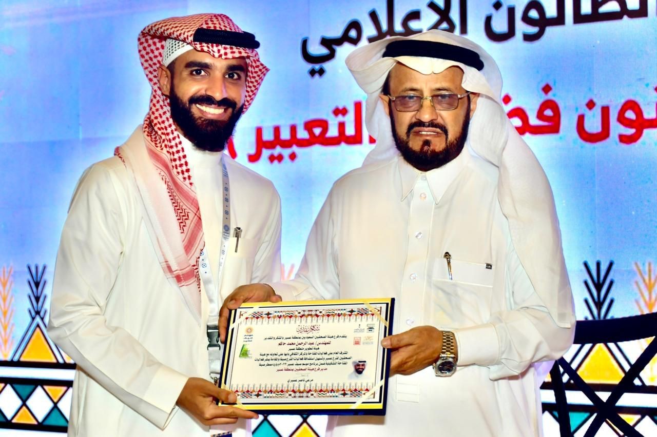 ثم كرم ضيوف الأمسية وممثل هيئة تطوير منطقة عسير ومثلها المهندس عبد الرحمن حاكم ومشرف الفعاليات محمد وائل