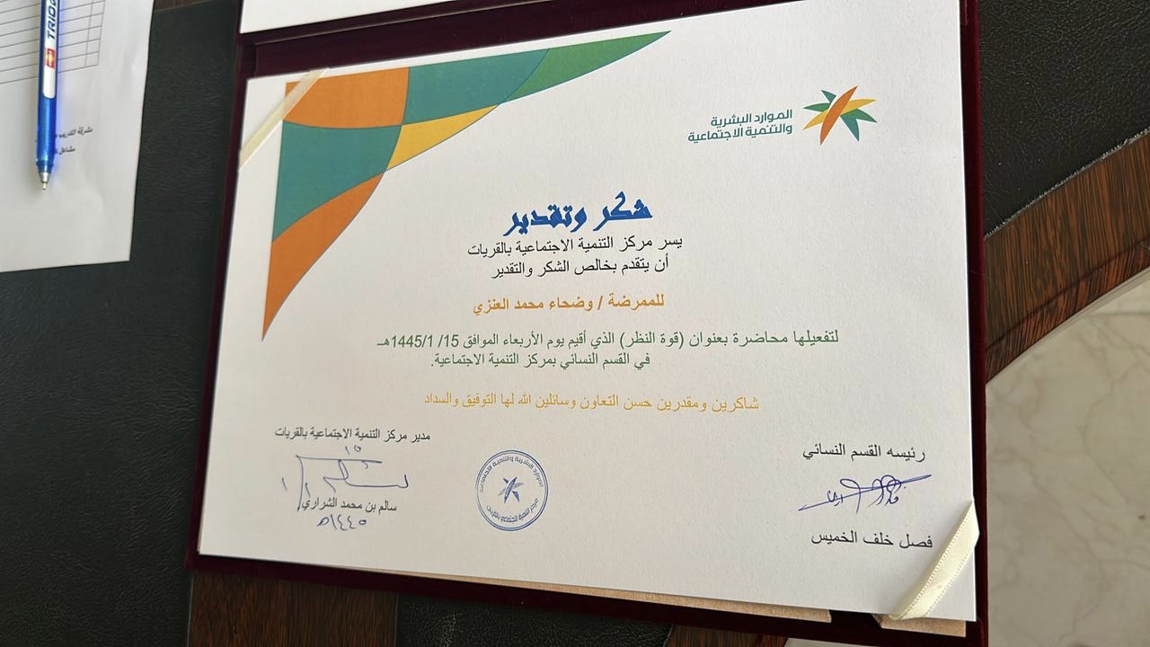 مركز تنمية القريات يقيم محاضرة بعنوان " "قياس النظر"