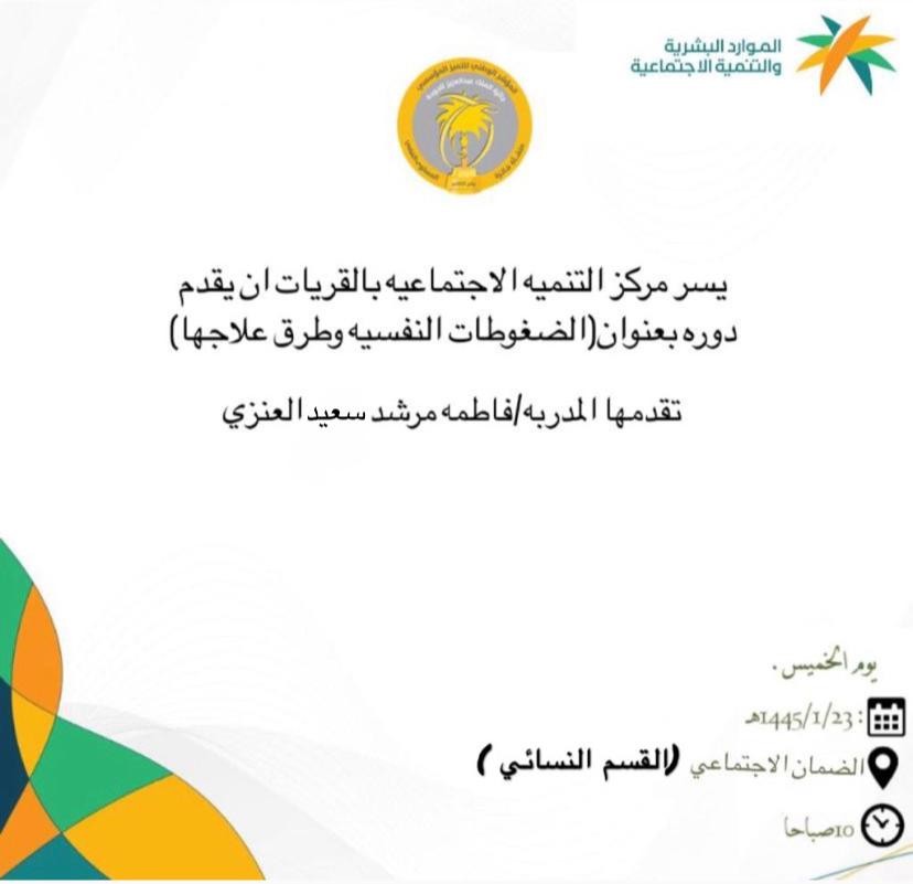 مركز تنمية القريات يقيم دورة بعنوان" الضغوط النفسية وطرق علاجها"