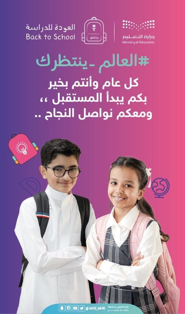 مؤكدًا على أهمية دور مديري ومديرات المدارس في قيادة العملية التعليمية في المدارس، وكذلك أهمية دور الأسرة في العمل على تهيئة الأبناء من الطلاب والطالبات؛ للعودة لمقاعد الدراسة، والبداية الجادة والمميزة بعد تمتعهم بإجازتهم السنوية،فيما تزامن النشرالإعلامي عبر الحسابات الرسمية للإدارة ومكاتب التعليم والمدارس وفق الإطار العام للخطة الإعلامية بهدف تهيئة المجتمع ومنسوبي التعليم والطلبة للتحقيق البداية الجادة للعام الدراسي وبث روح الإيجابية والحماس في نفوس الطلبة لمواصلة مسيرتهم التعليمية متضمنة عدد من الرسائل الاتصالية للاستعداد والتهيئة والترحيب بعودة الطلاب والطالبات سائلًا الله لهم التوفيق والنجاح لعامٍ سعيدٍ شعاره العلم وثماره المعرفة .
