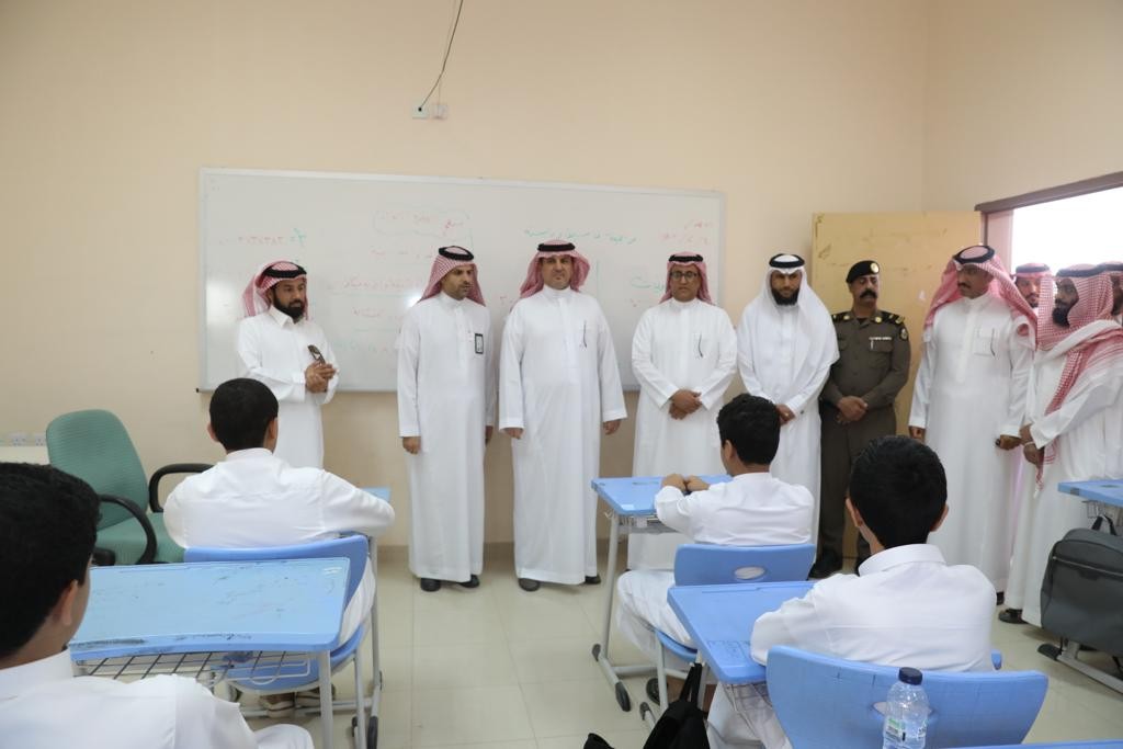 حيث كان في استقباله مدير التعليم / سفر بن محمد بريدي ومدير المدرسة ومنسوبوها.