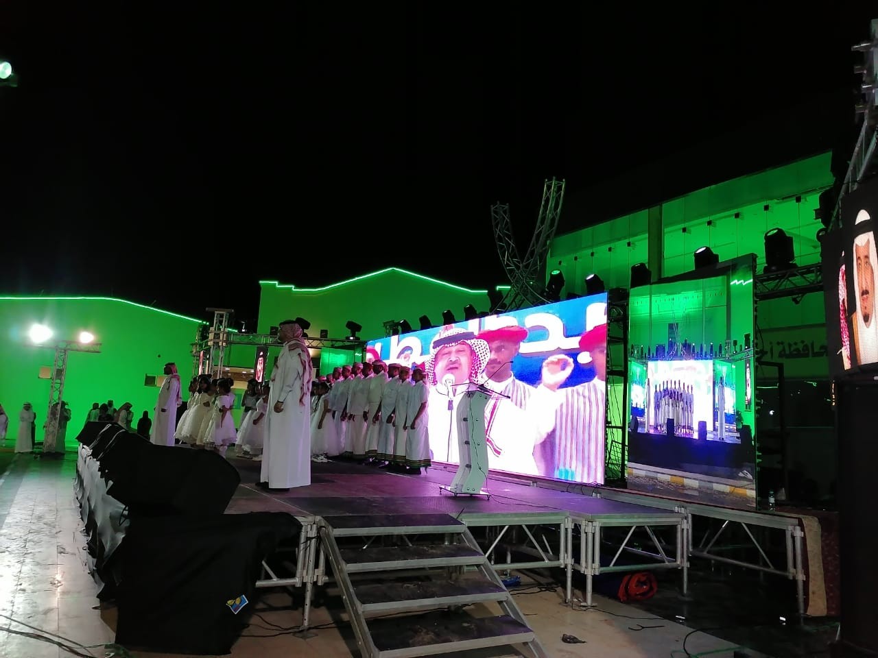ثم بدأ الحفل الخطابي والفني والذي بدأ بالنشيد الوطني من كشافة مدارس تعليم مكتب التعليم بالمسارحة والحرث ثم القرأن الكريم ، وبعد ذلك ارتجلراعي الحفل سعادة محافظ أحد المسارحة كلمة بهذه المناسبة.