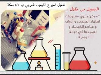 فعلت الابتدائية السابعة والأربعون التابعة لمكتب تعليم التنعيم بالإدارة العامة للتعليم بمنطقة مكة المكرمة يوم الأربعاء 10 / 4 / 1445هـالأسبوع العربي للكيمياء 2023