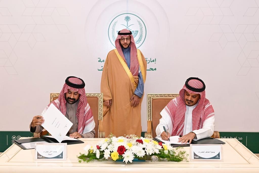 سعود بن نهار يشهد توقيع مذكرة تعاون بين الطائف الخضراء وآفاق خضراء البيئية