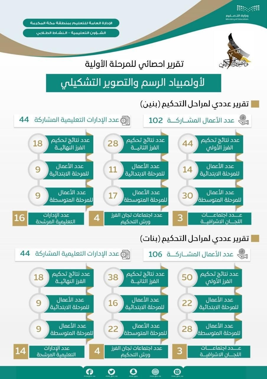 الجدير بالذكر أن المسابقة في مرحلتها الأولى حظيت بمشاركة 102 عملا للطلاب و 106 عملا للطالبات في 44 إدارة تعليمية وقد مرّت الأعمال بمراحل بدأت باللجان الإشرافية والورش التحكيمية وانتهت بالترشيحات.