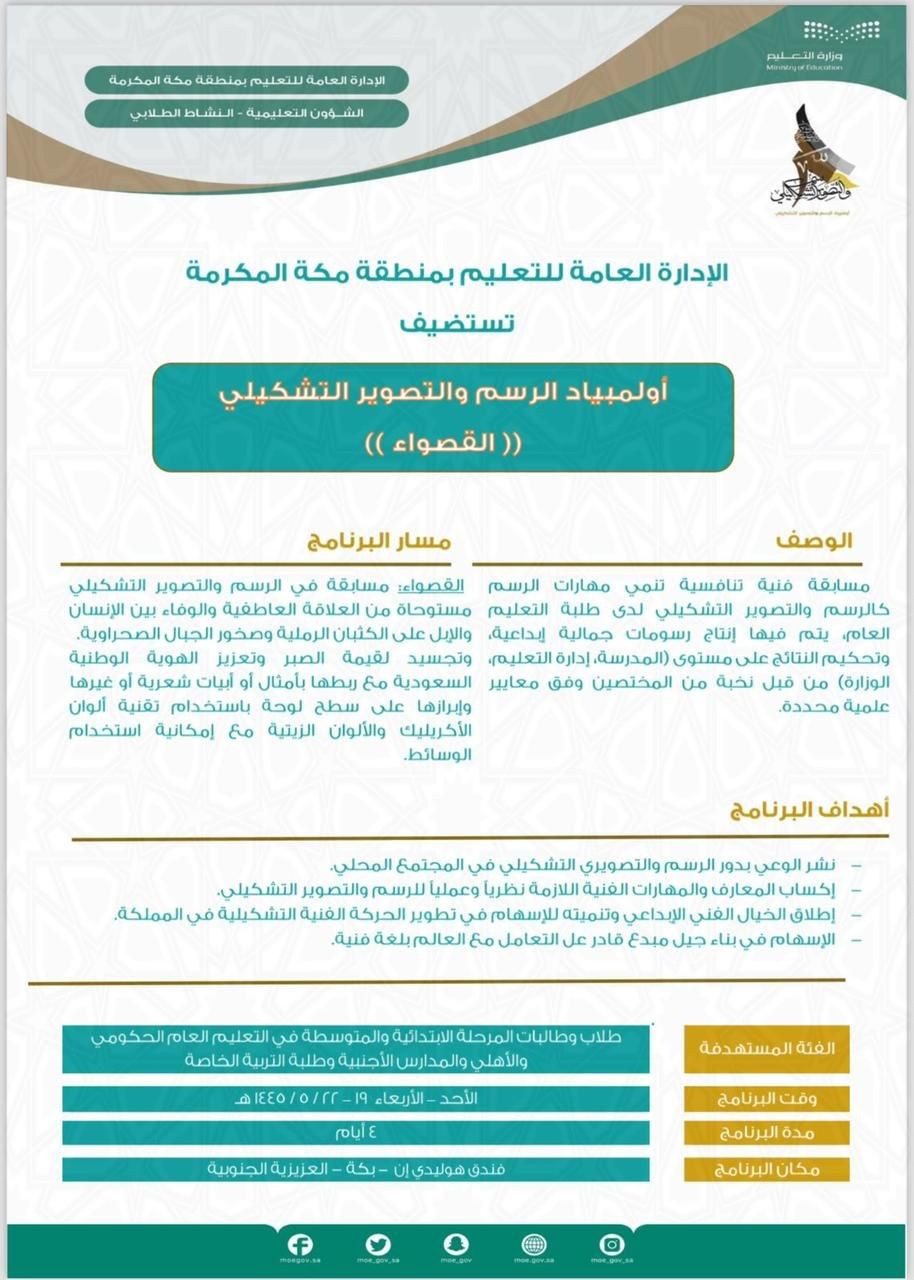تعليم مكة يستضيف الأولمبيادالرسم والتصوير التشكيلي
