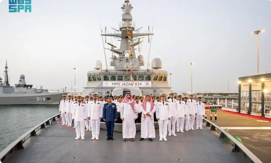 رعى صاحب السمو الملكي الأمير خالد بن سلمان بن عبدالعزيز وزير الدفاع، في قاعدة الملك فيصل البحرية بالأسطول الغربي بمحافظة جدة، اليوم، حفل تدشين سفينة «جلالة الملك جازان» رابع سفن مشروع السروات، وأول سفينة في المشروع يُستكمل بناء منظوماتها، وتُنفذ اختبارات القبول لها على الأراضي والمياه السعودية.