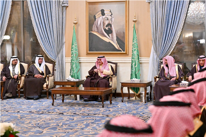 وفي بداية الاستقبال رحب سموه بالجميع، منوهاً بما حققته المملكة من إنجازات منذ إطلاق رؤية المملكة 2030، كان آخرها ما حملته الميزانية العامة للدولة من خير ونماء للوطن والمواطن، التي جسدت الرؤى الحكيمة للقيادة الرشيدة بقيادة خادم الحرمين الشريفين الملك سلمان بن عبدالعزيز آل سعود وسمو ولي العهد – حفظهما الله – من خلال ما أظهرته المؤشرات والأرقام في الموازنة، التي عكست قوة ومتانة الاقتصاد في المملكة وقدرته على مواجهة التحديات رغم الظروف التي يمر بها العالم.