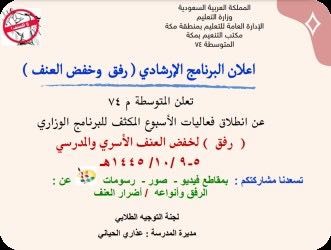 "رفق وخفض العنف" برنامج إرشادي تنفذه المتوسطة الرابعة والسبعون بتعليم مكة