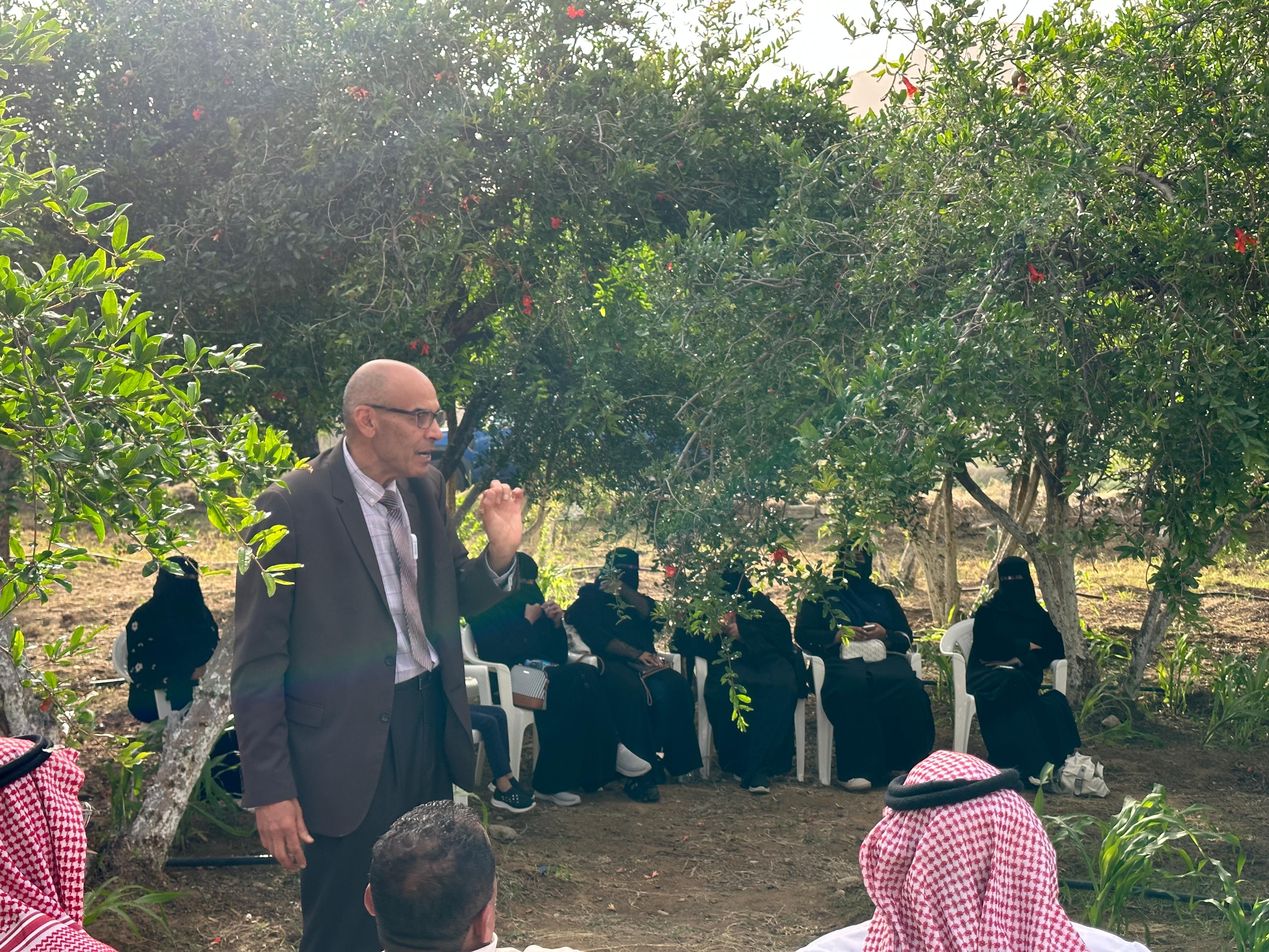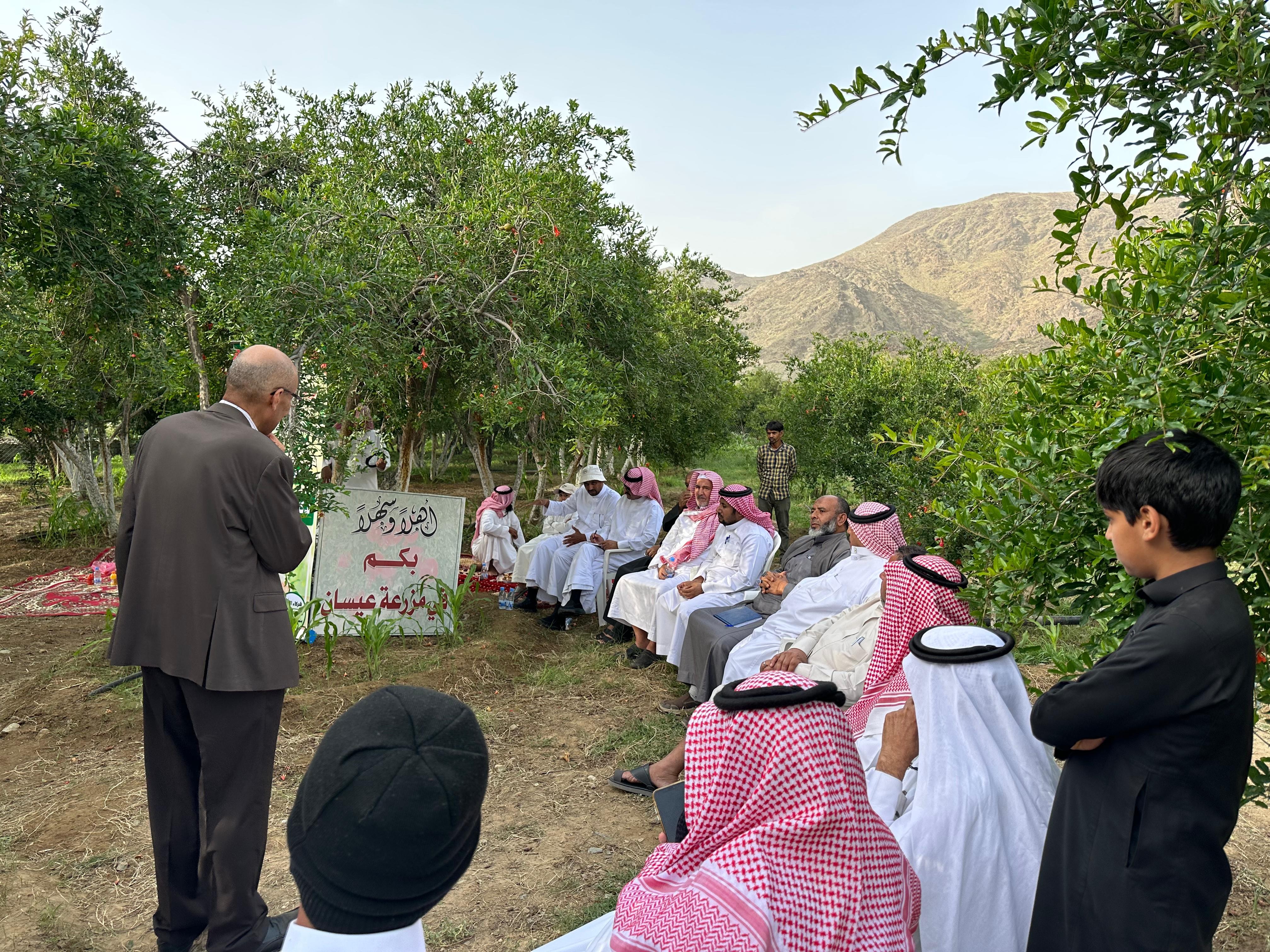 نظم فرع وزارة البيئة والمياه والزراعة بمنطقة الباحة بالتعاون مع برنامج ريف يوما حقليا بوادي بيده حول الممارسات الزراعية الجيدة في بساتين الرمان لمرحلة ما بعد عقد الثمار.