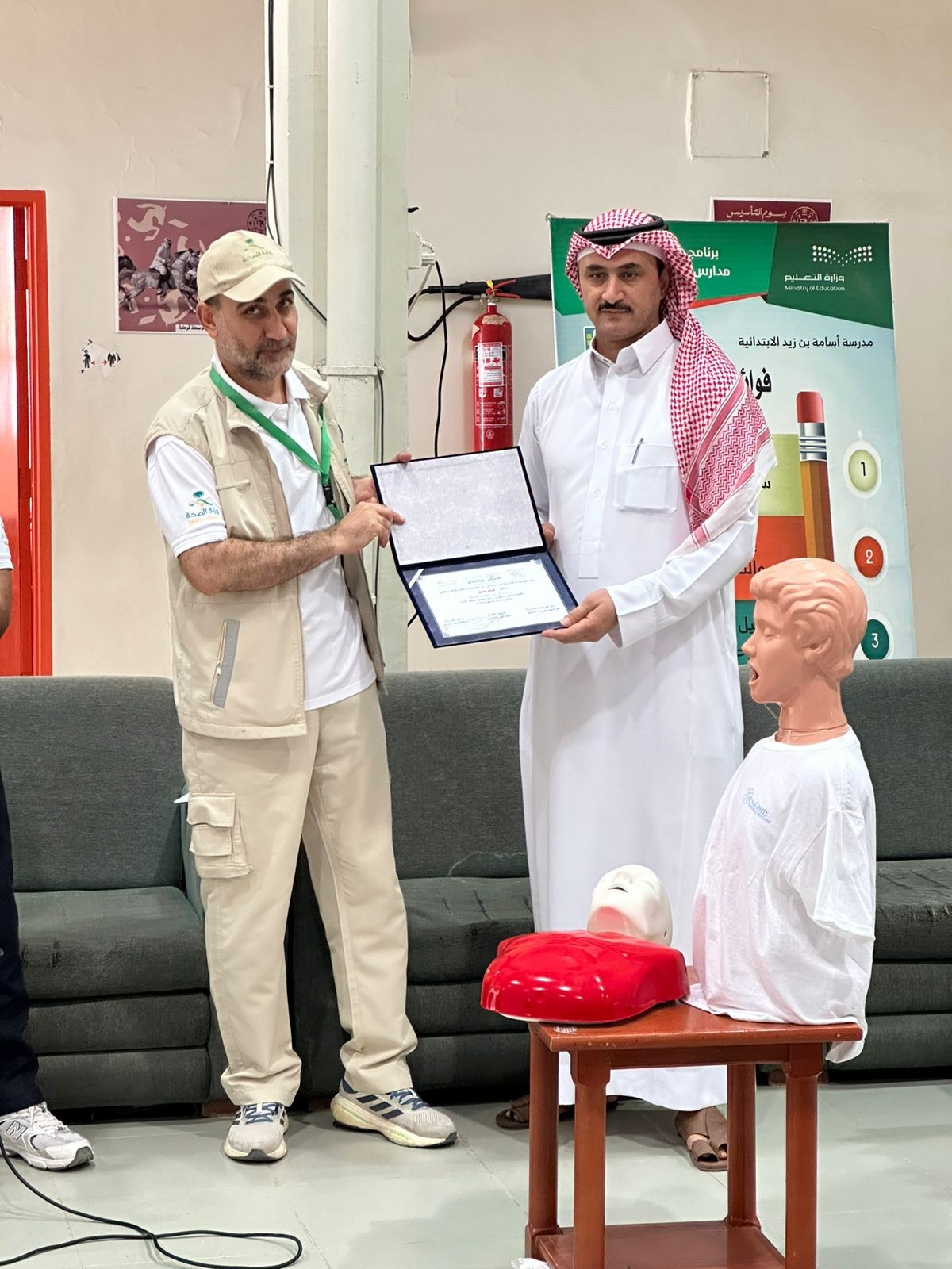 هذا ودارت حلقة مناقشة مع الطالبات تم من خلالها تلقي أسئلتهن ومداخلتهن والإجابة على جميع استفساراتهن ، ثم قدم كلٌ من : الدكتور غياث خليل ، والممرض نادر العنزي ، والممرض باسل العنزي من إدارة الأزمات والكوارث الصحية بالقريات ، نصائح للطلاب عن طرق الوقاية من الغرق في المسابح في فصل الصيف ، وتقديم الإسعافات الأولية للغريق ، وطرق المساعدة في حالات الإغماء من ضربات الشمس .