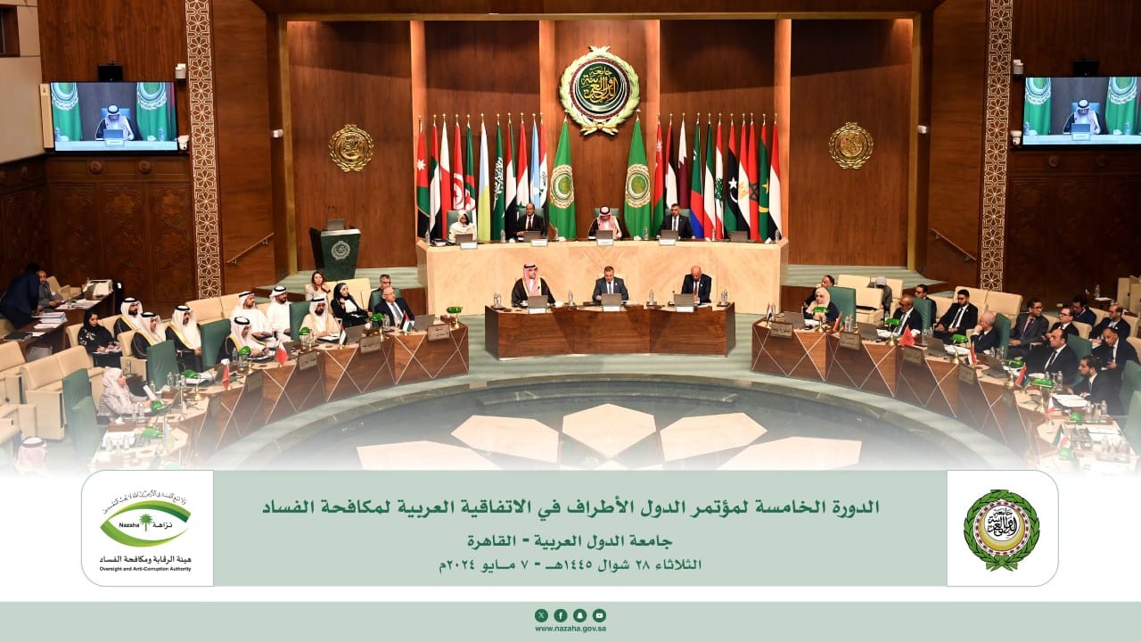 اختتمت أعمال اجتماع الدورة الخامسة لمؤتمر "الدول الأطراف في الاتفاقية العربية لمكافحة الفساد"، المنعقد بمقر جامعة الدول العربية في القاهرة، في شوال 1445 هـ الموافق الثلاثاء 7 مايو 2024م بمشاركة وفد المملكة العربية السعودية الذي يرأسه معالي رئيس هيئة الرقابة ومكافحة الفساد الأستاذ مازن بن إبراهيم الكهموس.