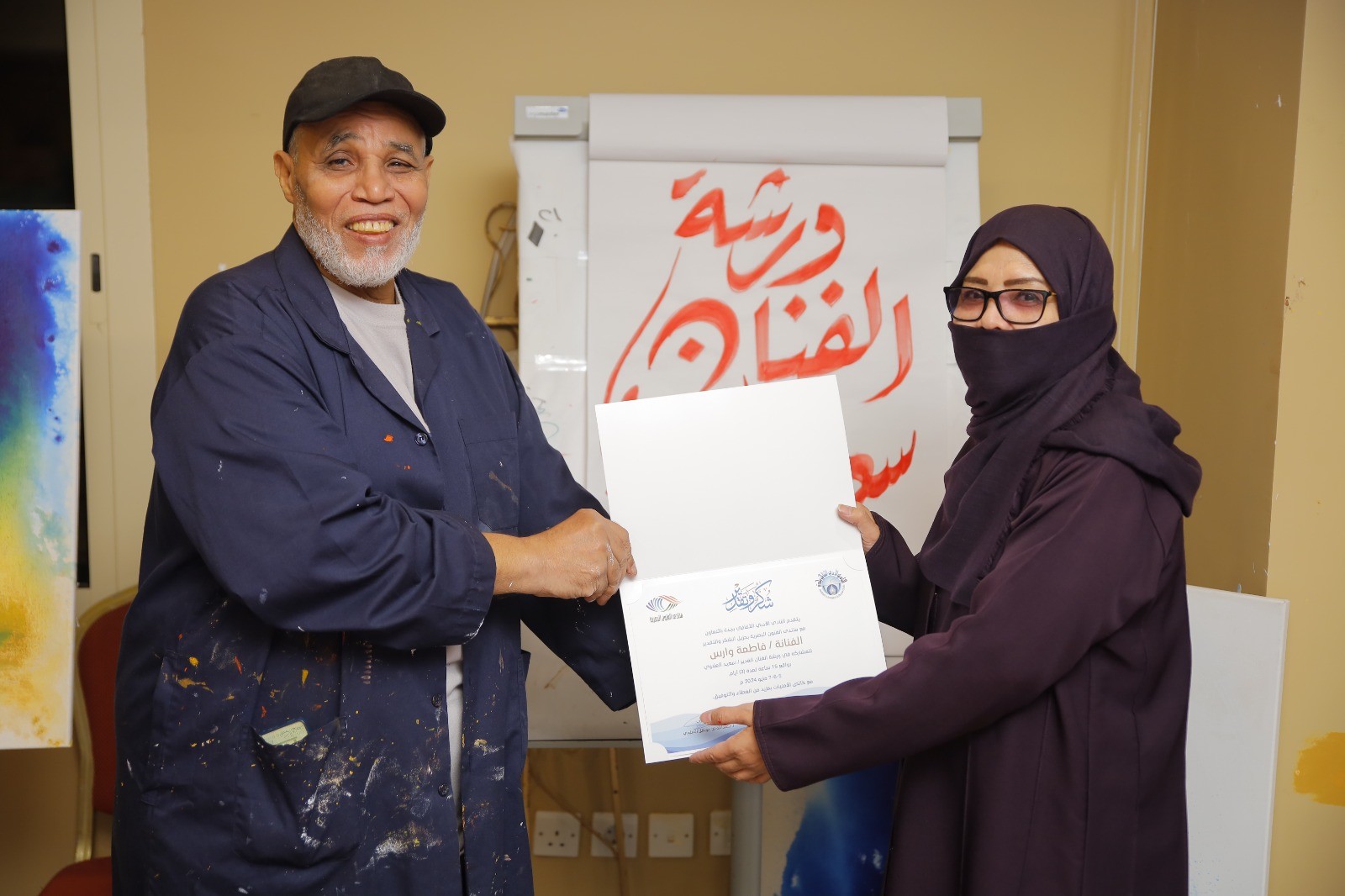 وشاركت في الورشة كل من الفنانات:أمينة شيخ ,صالحه الزهراني ,نادية لياتي , خديجة سليم ,رابحة الأحمدي ، مها المرزوقي ,عبير مصيري ,مرڤت مدرس , رانيه عواد ,رولا إسماعيل ,سمية الغالبي ,فاطمة وارس, نور الصواف ,فاتن الجاجة ,حصة مختار ,أماني اليافعي ,ابتسام باجابر, مها العنزي ,جيلان الغانمي ,لينا الحوراني ’مزنة البقمي ,هدى الغامدي, بالإضافة للفنان الخطاط محمد حجازي .