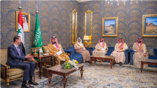 التقى صاحب السمو الملكي الأمير محمد بن سلمان ولي العهد رئيس مجلس الوزراء، الخميس، الرئيس السوري بشار الأسد، في البحرين.