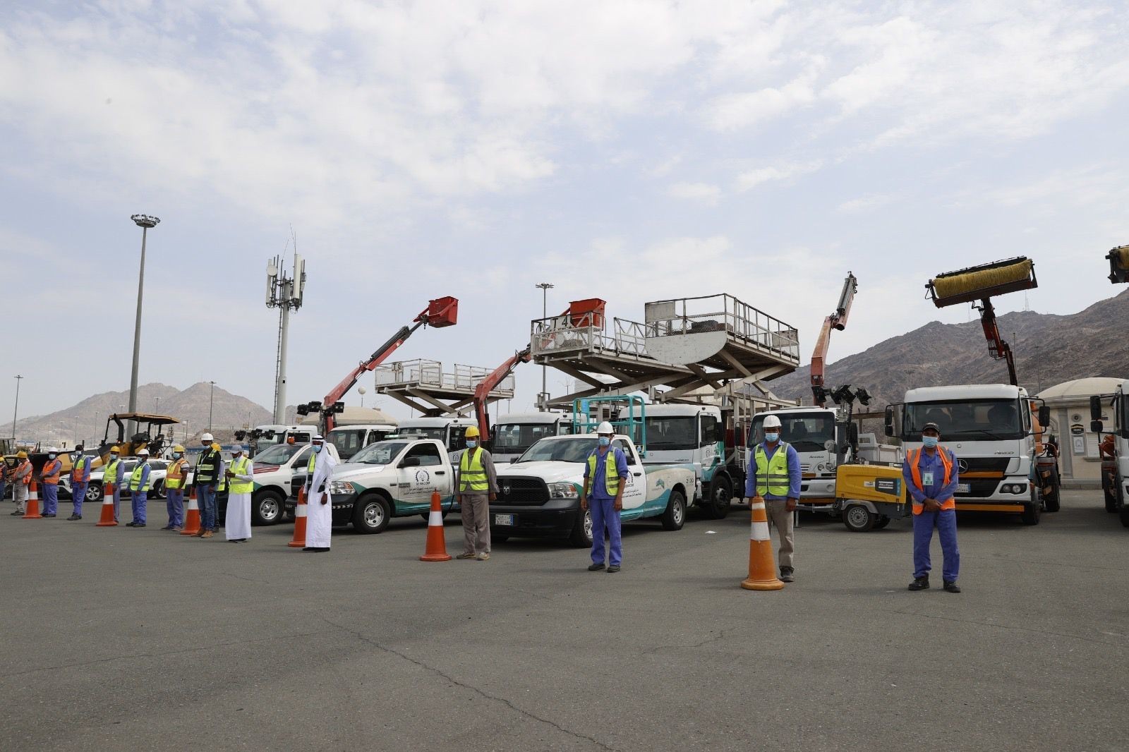 ففي مجال النظافة تم تجهيز أحدث الآليات والمعدات مثل الضواغط والمكانس الآلية والقلابات والبوبكات وغيرها ، وسيكون العمل على مدار 24 ساعة في المناطق المزدحمة وذلك بنظام الورديات المتداخلة ، بالاضافة الى تخصيص فرق مركزية لمواجهة أي حـــالات طوارئ كالأمطار أو الحرائق لا سمح الله أو لدعم أي منطقة في حالة الحاجة ، وتم دعم المشاعر المقدسة بالعدد الكافي من المراقبين والمشرفين والمعدات اللازمة ، كما تم تجهيز الصناديق الكهربائية الضاغطة للنفايات البالغ عددها (1135) صندوق ، وعدد (113) من المخازن الأرضية للنفايات للتخزين المؤقت النفايات بعد كبسها بمشعر منى لمواجهة صعوبة حركة المعدات ، إضافة الى (9) تريلات كبيرة ضاغطة و(4) محطات انتقالية ، وحوالي (87,000) حاوية بأحجام مختلفة