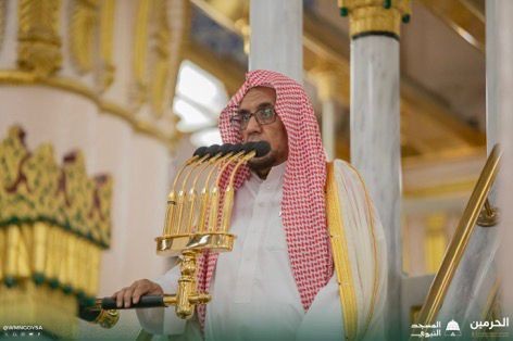 أم المصلين في المسجد النبوي فضيلة الشيخ الدكتور حسين آل الشيخ واستهل خطبته بقوله: أجلّ المقاصد وأنفع العلوم وأشرفها وأعلاها، العلم بأسماء الله الحسنى الدالة على أحسن المعان، وأكمل الصفات، وأجلها وأعظمها وأمجدها؛ وإن أعظم ما يستنير به القلب وينشرح به الصدر، معرفة أسماء الله الحسنى وصفاته العلا من مشكاة الوحي، فمن تلقاها بالقبول والرضا والتسليم، وأذعن لها بالانقياد واطمأنت إليها نفسه، وسكن إليها قلبه، وقويت بها معرفته، متعبداً لله بها، ازداد بها إيماناً بالله عز شأنه، وتعظيماً لربه جل جلاله، واشتدت محبته وإجلاله لخالقه تبارك وتعالى، ففلاح العبد وسعادته في إقراره بأسماء الله الحسنى وصفاته العظمى، بل وليست حاجة القلوب إلى شيء أعظم منها إلى معرفة بارئها وفاطرها، ومحبته وذكره والابتهاج به، وطلب الوسيلة إليه، والزلفى عنده، ولا سبيل إلى هذا إلا بمعرفة أسمائه وأوصافه الواردة في القرآن الكريم والسنة المطهرة، وكلما كان العبد بها أعلم كان بالله أعرف، وله أطلب، وإليه أقرب.