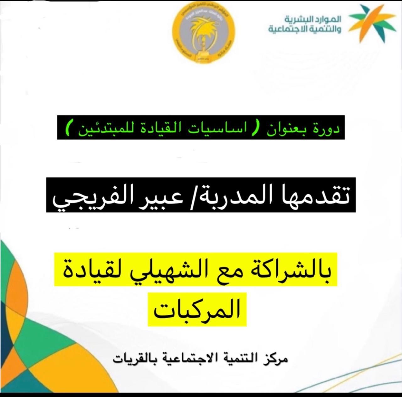 مركز التنمية الاجتماعية بالقريات يقيم دورة "أساسيات القيادة للمبتدئين" لمنسوبات المركز.