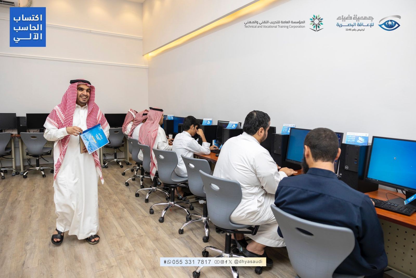 نضمت جمعية ضياء للإعاقة البصرية بالتعاون مع الكلية التقنية بأبها برنامج اكتساب ، والذي يخدم ذوي الإعاقة البصرية من خلال التدريب على استخدام الحاسب الآلي بواسطة آلة النطق الخاصة لقراءة الشاشة.