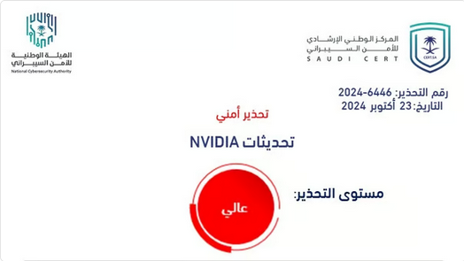أصدر المركز الوطني الإرشادي للأمن السيبراني، تحذيرًا أمنيًا عالي المستوى، يدعو فيه جميع المستخدمين إلى المبادرة بتحديث منتجات NVIDIA.