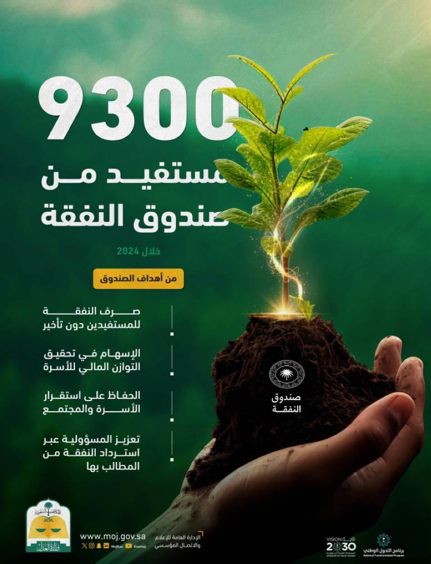 أستفاد أكثر من 9300 مستفيد، من صندوق النفقة في وزارة العدل، وذلك منذ بداية العام الجاري 2024.