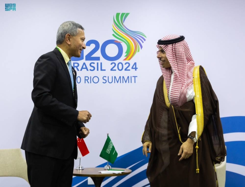 التقى صاحب السمو الأمير فيصل بن فرحان بن عبد الله وزير الخارجية، اليوم، معالي وزير خارجية جمهورية سنغافورة الدكتور فيفيان بالاكريشنان، وذلك على هامش انعقاد قمة دول مجموعة العشرين، في مدينة ريو دي جانيرو البرازيلية.