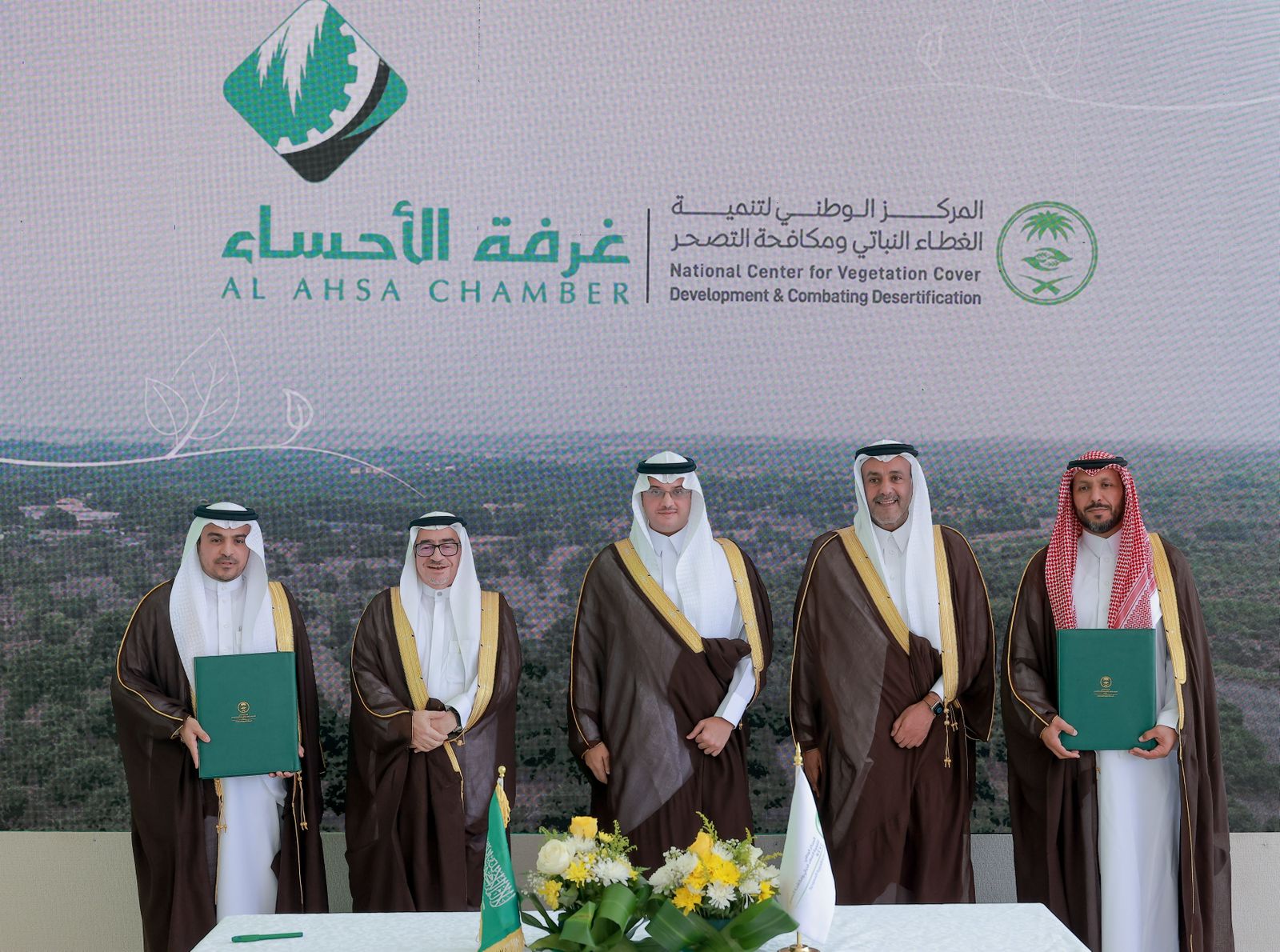 رعى سمو محافظ الأحساء الأمير سعود بن طلال بن بدر اليوم الإثنين 3 اتفاقيات للمركز الوطني لتنمية الغطاء النباتي ومكافحة التصحر، تهدف إلى دعم الغطاء النباتي، وتعزيز الحياة الفطرية في الأحساء، وذلك على هامش حفل إطلاق عدد من الكائنات الفطرية في متنزه الأحساء الوطني، بالتعاون مع المركز الوطني لتنمية الحياة الفطرية ، كما تم إطلاق مبادرتين رئيسيتين : الأولى لزراعة الحزام الأخضر، والثانية لنثر البذور باستخدام الطيران الشراعي في مواقع مختلفة بالمحافظة.