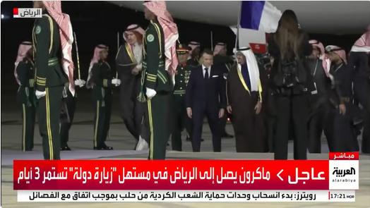وصل الرئيس الفرنسي إيمانويل ماكرون اليوم الاثنين إلى السعودية في إطار زيارة دولة، تستمر ثلاثة أيام.