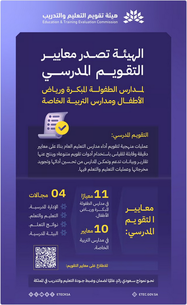 أصدرت هيئة تقويم التعليم والتدريب معايير التقويم المدرسي لمدارس الطفولة المبكرة ورياض الأطفال، ومدارس التربية الخاصة، وعددها 25 معيارًا، وذلك لتكون امتدادًا لمعايير التقويم المدرسي المعتمدة سلفاً.