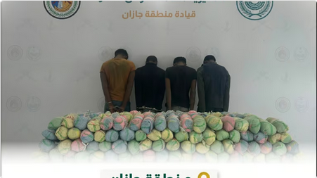 قبضت الدوريات البرية لحرس الحدود في قطاع الدائر بمنطقة جازان على (4) مخالفين لنظام أمن الحدود من الجنسية الإثيوبية، لتهريبهم (72) كيلوجرامًا من نبات القات.
