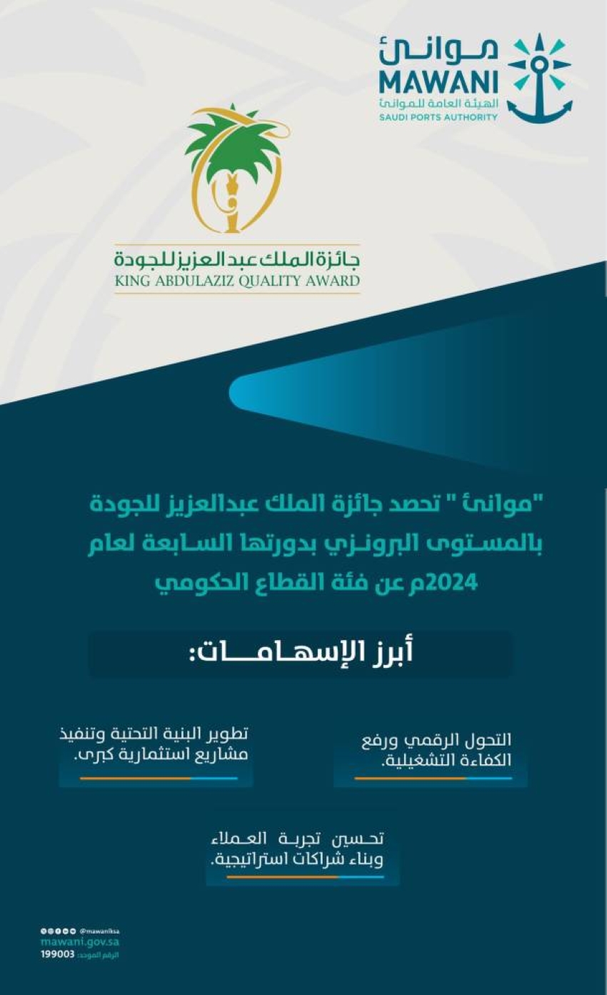 "موانئ" تحصد جائزة الملك عبدالعزيز للجودة على المستوى البرونزي