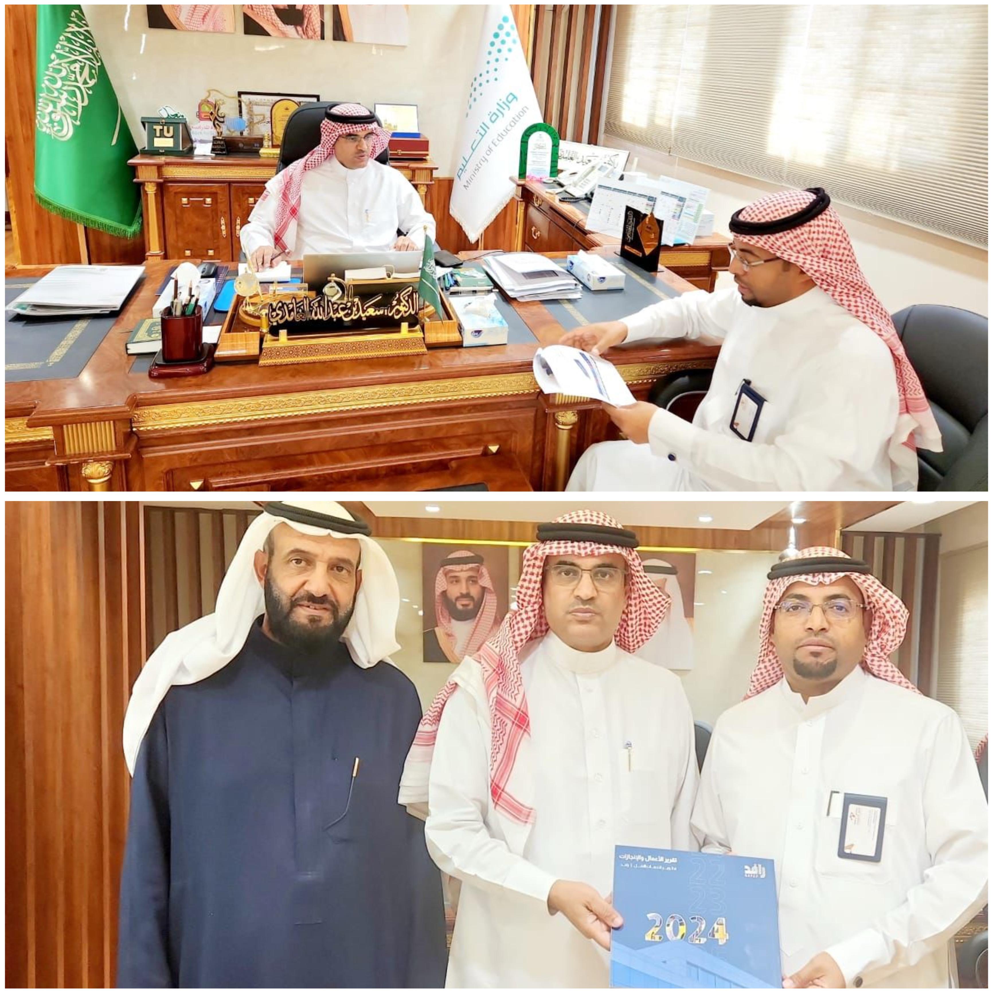 اطلّع اليوم المدير العام للتعليم بمحافظة الطائف الدكتور سعيد بن عبدالله الغامدي على تقرير النقل التعليمي للعام الدراسي 1446هـ المقدّم من شركة تطوير لخدمات النقل " رافد " ، بحضور المشرف بشركة رافد في تعليم الطائف والخدمات المشتركة وقسم النقل المدرسي وجودة الخدمات بالإدارة .