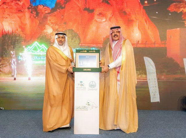 تسلّم صاحب السمو الملكي الأمير عبدالعزيز بن سعد بن عبدالعزيز أمير منطقة حائل، شهادة اعتماد المدينة الصحية من منظمة الصحة العالمية، وذلك خلال حفل أقيم بهذه المناسبة بمركز المغواة للاحتفالات مساء أمس، بحضور معالي وزير الصحة الأستاذ فهد بن عبدالرحمن الجلاجل، ومدير فرع وزارة الصحة بمنطقة حائل سلطان بن ناصر المسيعيد، ووكيل إمارة منطقة حائل علي بن سالم آل عامر, وعدد من المسؤولين.وخلال الحفل, استُعرضت جهود المنطقة في تحقيق مستهدفات برنامج المدن الصحية، وما تحقق من مبادرات وبرامج أسهمت في تعزيز المؤشرات الصحية وجودة الحياة، تحقيقًا لمستهدفات رؤية المملكة 2030.بعدها ألقى وزير الصحة كلمةً هنأ سمو أمير منطقة حائل والأهالي بهذه المناسبة، ونوه بدعم القيادة الرشيدة -أيدها الله- للقطاع الصحي، مؤكداً أن اعتماد حائل مدينةً صحية يعكس التقدم المتحقق في المؤشرات الصحية، بفضل دعم برنامج المدن الصحية وتكامل الجهود بين مختلف الجهات، ضمن نهج "الصحة في كل السياسات"، مشيرًا إلى ارتفاع عدد المدن الصحية في المملكة إلى 17 مدينة صحية، بما يسهم في تحقيق مستهدفات رؤية المملكة 2030 في مجتمع حيوي ينعم بصحة مزدهرة.