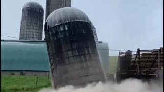 لحظة انهيار صومعة للحبوب في مزرعة أمريكية