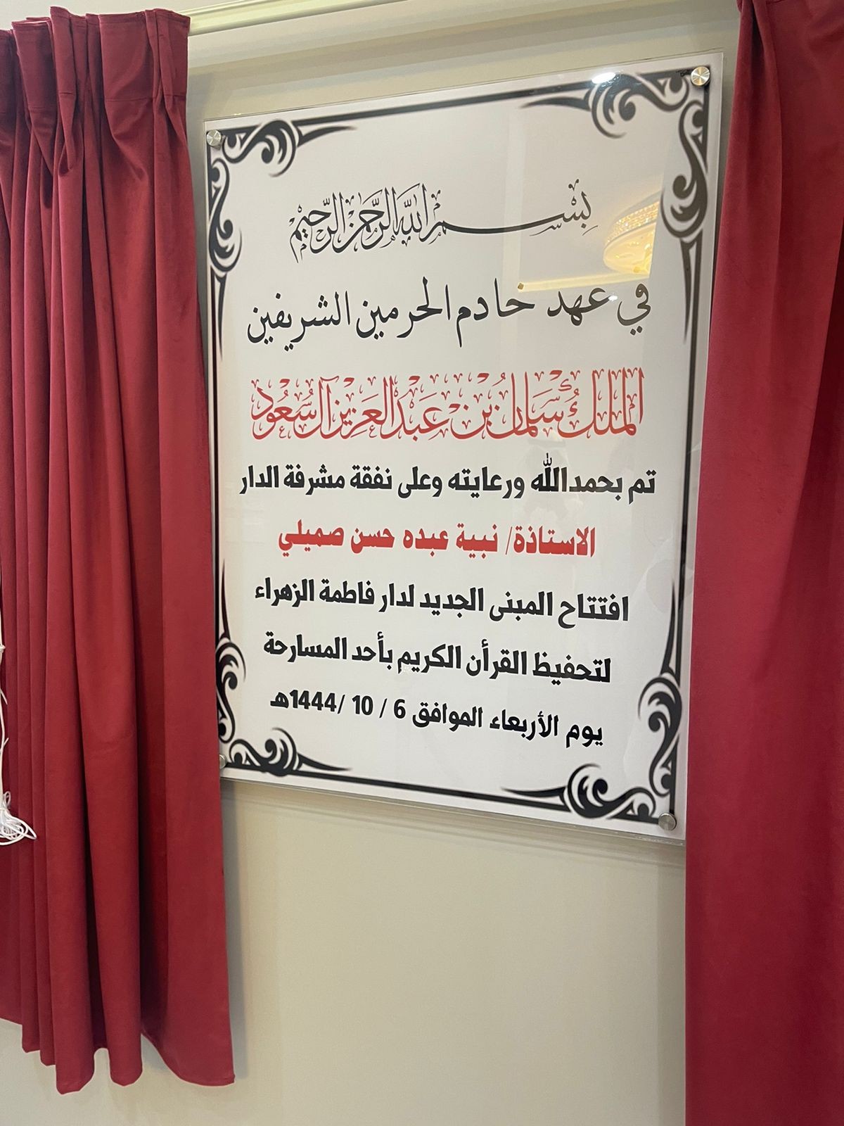 فاعلة خير تهدي لجمعية تحفيظ القرآن الكريم بأحد المسارحة مبنى لدار (فاطمة الزهراء)