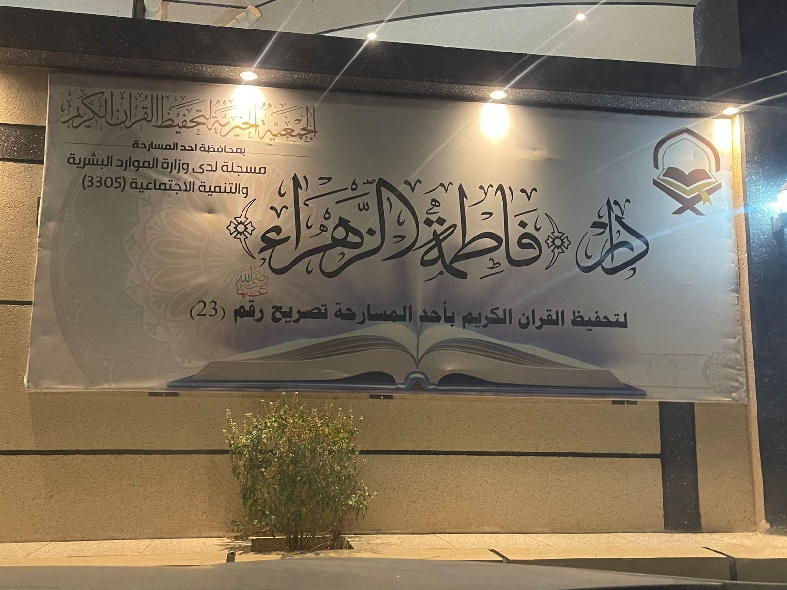 وقد اعتمدت جمعية تحفيظ القرآن الكريم بأحد المسارحة مسمى دار( فاطمة الزهراء) كأسم للدار، وعينت المتبرعة الأستاذة نبيه صميلي مشرفة على الدار ، علماََ أن للأستاذة نبيه صميلي جهودها الخيرة في خدمة المحافظة من خلال نشر تعليم كتاب الله فقد كانت قبل إنشاء المبنى الجديد خصصت جزء من منزلها لتعليم بنات المحافظة القرأن الكريم تحت إشراف جمعية القرأن الكريم بأحد المسارحة ،وكانت تتولى الصرف على الحلقات من حسابها الخاص وكذلك تكريم الحافظات تحفيزاََ ودعماََ لهن بالإضافة لدفع رواتب المعلمات .