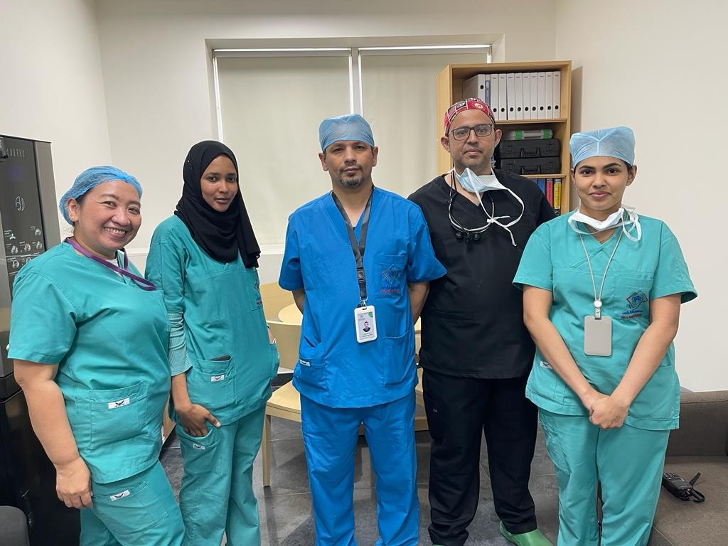 تم وضع الخطة العلاجية المناسبة للحالة و على أساسها تم تحديد موعد إجراء العملية الجراحية بمشاركة فريق التخدير بقيادة استشاري التخدير الدكتور محمد حامد وأخصائية التخدير الدكتورة هند و فريق التمريض بقيادة لاتا فيجي وآثار كمال وكافة الكوادر ذات العلاقة وفي حديثه عن تفاصيل العملية أشار الدكتور مبارك : أنه تم إجراء العملية وتضمنت استئصال الورم من اللسان مع تحقيق أطراف آمنة من الورم ومع عمل فحوص للأنسجة من أطراف الجرح وقت العملية للتأكد من عدم بقاء خلايا سرطانية مع ترميم الجرح كما تم عمل تجريف للعقد الليمفاوية للجهة اليمنى من الرقبة كاملة بشكل احترازي لتأكيد عدم انتشار الورم .